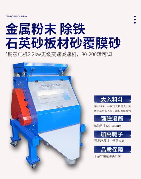 石英粉、板材沙高强磁磁选机适用于玻璃厂、酒瓶厂、食品厂、废旧金属回收厂等多用于粉状、颗粒状等的除铁环节。