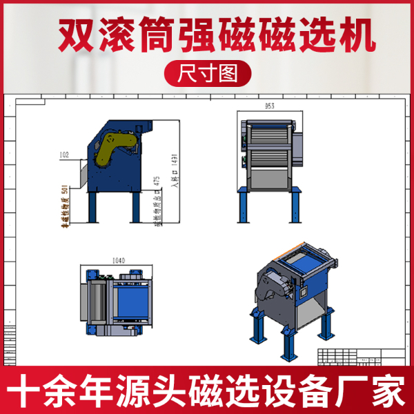 双滚筒磁选机吸铁机广泛应用于有色金属吸铁,铜米选铁,铝销除铁,铝刨花选铁,磨料磨具、耐火材料、非金属选矿、碳黑、粮食、饲料、化工原料等行业。